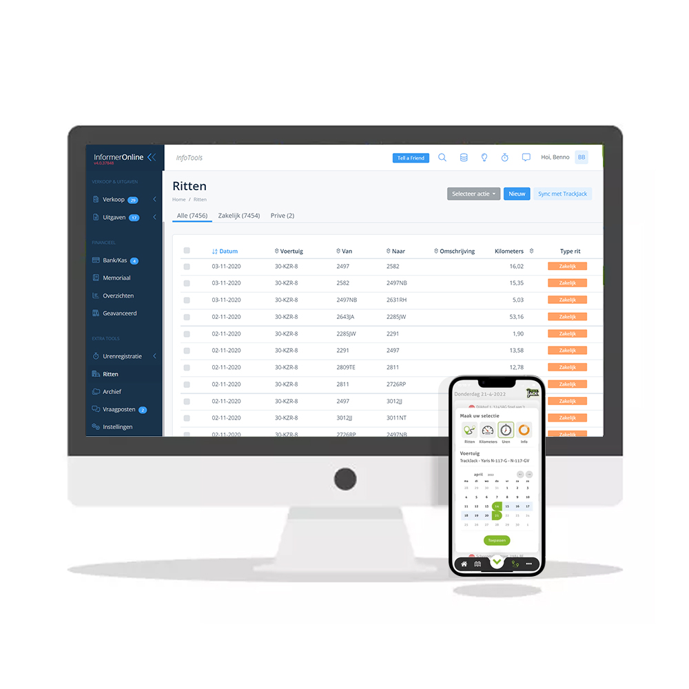 Say goodbye to the hassle and save time on your bookkeeping, so that you, as an entrepreneur, can focus on what really matters: your business. Whether you’re a self-employed person, an SME owner or a start-up, you can benefit from Informer’s smart tools anytime, anywhere. What’s more, you can easily collaborate remotely with your accountant, who can check important details such as your mileage log for you!