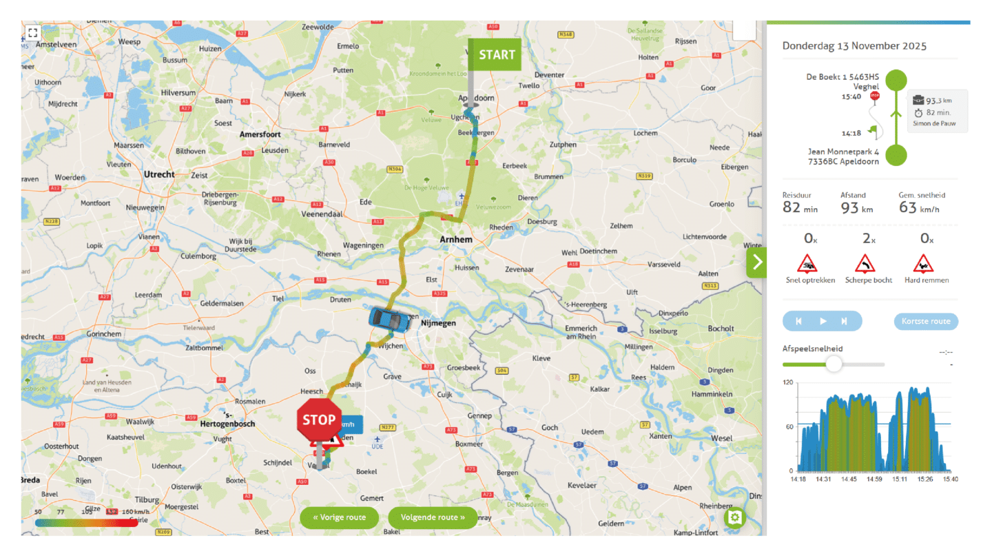 Trackjack provides insights into fuel consumption, driving behaviour and idle time for each vehicle and driver. This allows you to see immediately where savings can be made: by reducing unnecessary idling, optimising routes and improving maintenance. Many customers save more than the subscription cost within the first few months.