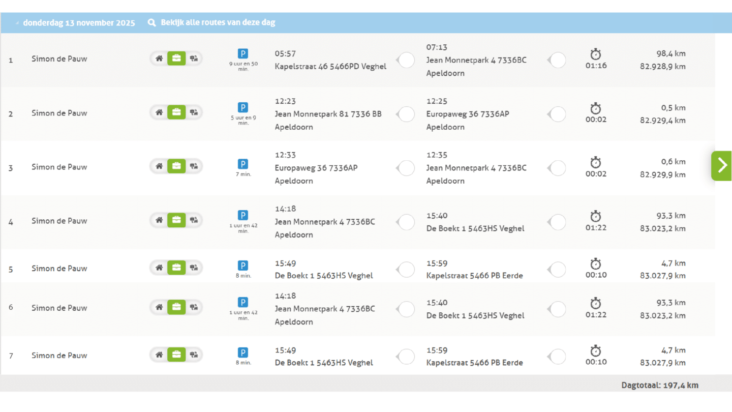 With TrackJack, hours are automatically linked to journeys and working days. This means you always have a reliable overview of hours worked and journeys made, without having to reconstruct anything afterwards.