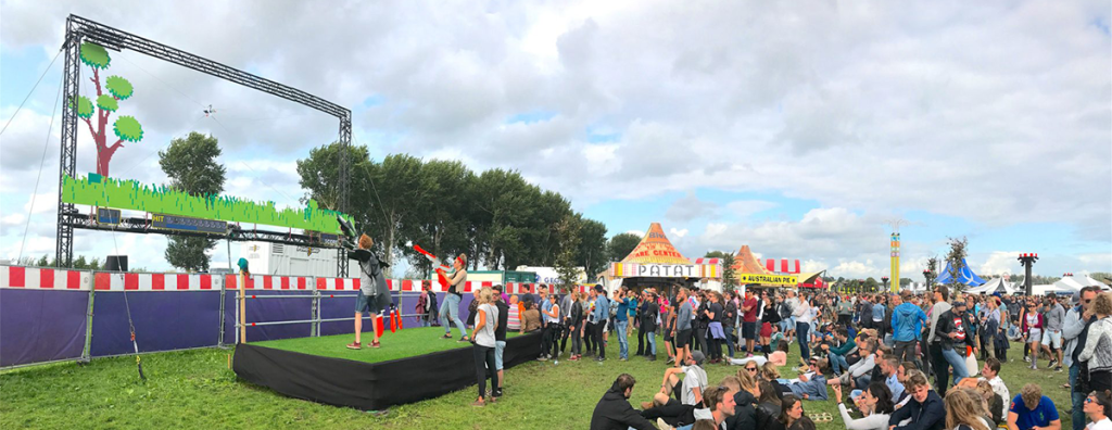 If you’ve been to Lowlands in the last 14 years, you’ve no doubt seen or played them. Pinball with an old 2CV (the ‘duck’), playing live Pac-Man, and even life-size Duck Hunt (don’t worry, it’s without real ducks). It all sprang from Thijs’s mind and has since been tried and tested by tens of thousands of players.